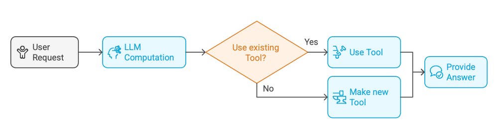 An LLM is able to generate code, that is, to CREATE ON THE FLY tools needed to solve the requested task. On this very broad topic I am running a column on 01Net called AI Cookbook. That I invite you to follow if you are passionate about coding (and speaking italian).