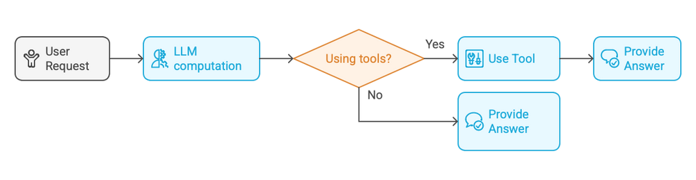 But we are in a situation where we have a USER who makes a request, an LLM who processes it, decides whether to use one of the available tools, provides a response.