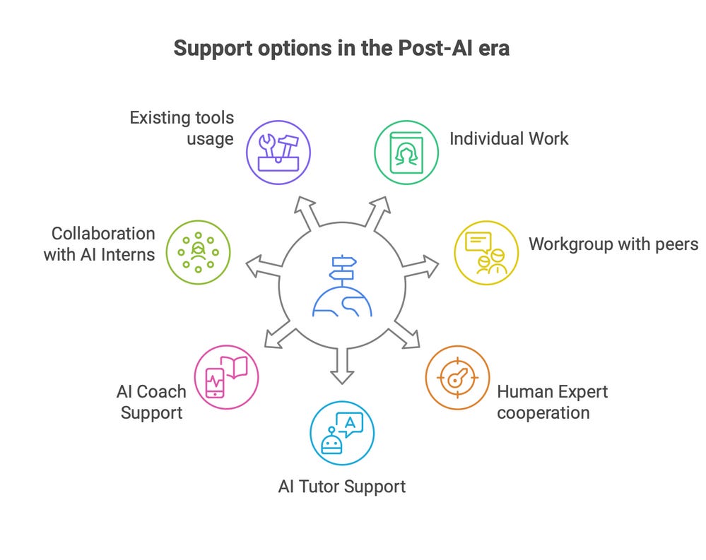 Students, interns, employees, managers—everyone has new opportunities. In the pre-AI world, studying was mostly an individual or group activity, sometimes with expert support. Today, thanks to the power of AI—both Generative and otherwise—this landscape has expanded with new possibilities, drastically changing how we approach tasks, whether they are learning or work-related.